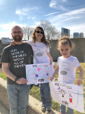 I started to tear up at mile 7 because I felt like garbage like how the heck was I going to go another 6 miles. I turned the corner and was expecting to see my family soon. I'd need their motivation. I thought about just stopping to hug Adam and have him tell me I could do it because I didn't think I could finish. I saw them about mile 9 and I started crying. I high fived all 3 girls and while I'm sobbing I just thought to myself "You have to prove to your daughters that you can do hard things. They would not want you to give up." So I pulled over to the side and really cried while stretching my groin. I gave myself that little break to get my bearings. At mile 11, I popped some caffeine gum, it didn't do much. I pulled over again to stretch some more. I turned the corner for the big hill/bridge at mile 12. I went up it with all my might. I was pretty out of breath when I was down hill so I knew I gave it my best. Next turn after that is when I saw my family again. Oh, what a happy surprise! I just smiled and put my hands up so they knew Mom didn't quit and she was gonna keep fighting. I took another gel somewhere in there again. My family was an amazing push but I also needed some energy. That last mile felt like an eternity.